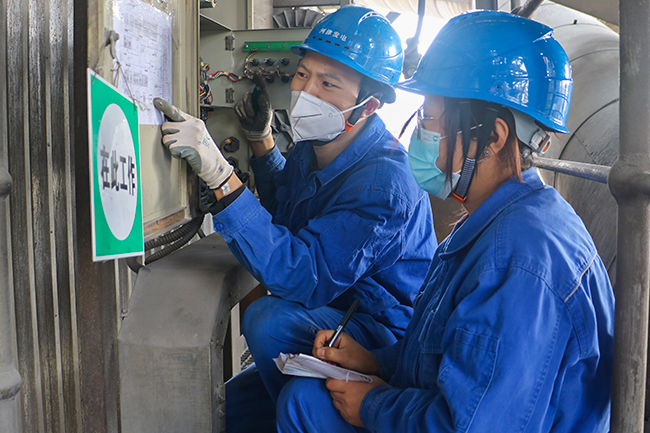 图为设备部仪控班人员检修伴热设备。