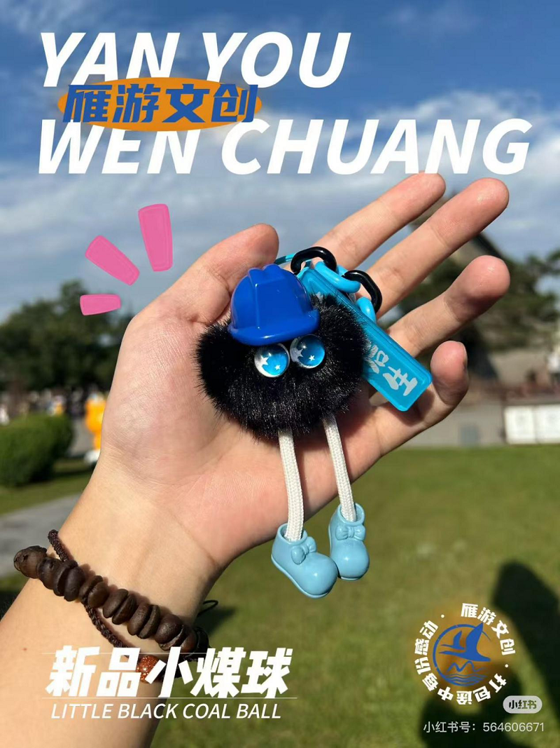 具有地方特色的小煤球毛绒玩具深受女性和儿童游客的喜爱