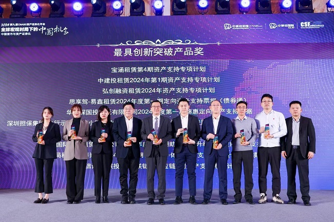 近日,由中诚信、中国资产证券化论坛(CSF)、中国资产证券化分析网(CNABS)联合主办,联合行业内各专业机构共同协办的“2024年第九届CNABS资产证券化年会”暨“金桂奖”年度评选活动在上海举行,弘创融资租赁有限公司凭借2024年6月发行的“弘创融资租赁2024年资产支持专项计划”,荣获“金桂奖”之“最具创新突破产品奖”。