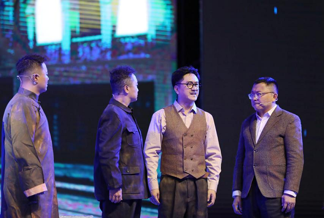 演出中,两位讲述人的讲述贯穿全场,既有历史的回顾也有现代生活的展现,讲述人还隔空与剧中人对话,形式新颖,沉浸感十足。在解放太原段落中,霍桂花送城防图最终导致终身不孕的故事,让现场观众无不动容;在呈现太原籍共产党人王荷波的故事中,他面对前同志叛党时高唱《国际歌》,并坚定喊出《入党誓词》时,台上演员动情演绎,台下观众潸然泪下。最后,演出在童声独唱中落下帷幕。