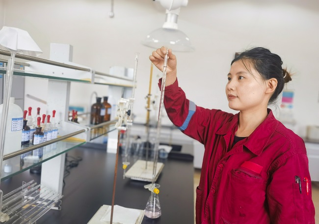 实操包括全硅、酚酞碱度和钙含量的测定,全硅试验对操作精度的要求近乎苛刻。单倍、双倍、平行样的测定,每一步都不能有丝毫偏差。一开始,平行样和试剂空白的误差总是超出标准范围,在参赛选手一筹莫展时,公司聘请专家为参赛选手答疑解惑,她便从最基础的步骤练起,细化标准,反复练习,直到手腕形成肌肉记忆。滴定分析中,紧盯滴定管中一滴或者半滴标液对待测样品的影响,练就对颜色变化的敏锐感知。每次试验后都认真复盘,分析误差来源,反复更正每个环节,直到单双倍和平行样的误差稳定在允许范围内,这时,她开始注重加快整体试验时间,紧盯秒表,卡着每一个节点,不断优化试验流程,直到准确度和速度都达到心理预期。