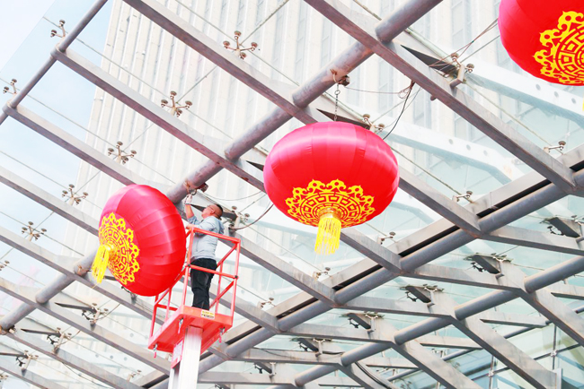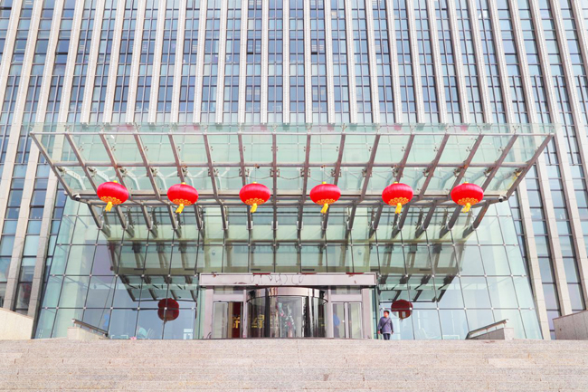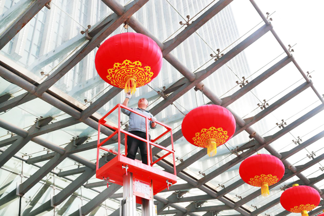 国庆将至,为营造热烈喜庆、欢乐祥和的节日氛围,煤业集团综合办公楼的工作人员将一个个寓意着红红火火、欣欣向荣的大红灯笼悬挂在大楼入口处,喜迎祖国生日的到来。