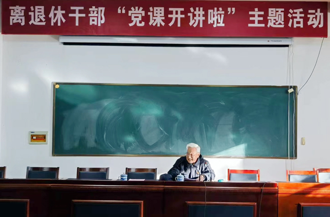 81岁高龄的周日贵同志以《如何以党的二十大精神为引领,推动老干部工作高质量发展》为主题,介绍了党的二十大的重大意义,深入浅出地对党的二十大精神进行了全面解读,并就老干部工作的高质量发展提出了建议。他号召大家要发挥余热,引领年轻党员、干部坚定信念跟党走,直面使命勇担当,挺纪在前不逾矩,无私奉献有作为,品行端正作表率。