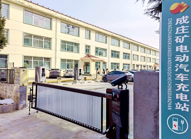 在成庄矿工程管理部大院停车场,6个崭新的电动汽车充电桩整齐排列,员工们可以随时享受到优惠便捷的充电服务。