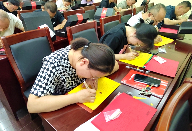 为庆祝中国共产党成立103周年,6月25日,长治襄垣公司开展“非遗剪纸+红色党史”党课,打造沉浸式、互动式党性教育,让党史学习动人心弦。