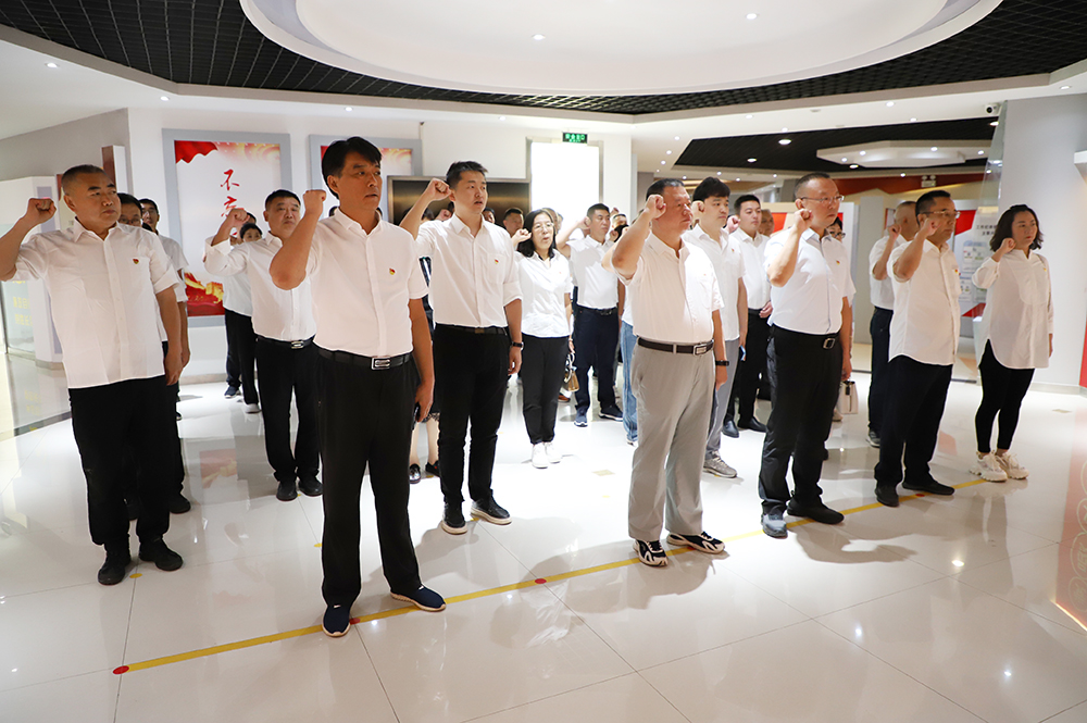 参观结束后,全体党员、干部在党旗前庄严宣誓,以铮铮誓言表达了为党的事业奋斗终身的决心。