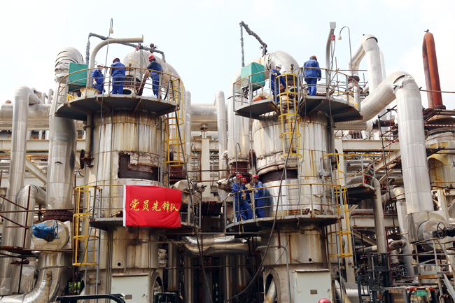 金石园区分公司立足于自主创收,组建了党员先锋队,仅用四天时间,圆满完成了两台预变炉共18吨瓷球和30吨触媒的更换工作。此次触媒更换任务时间紧任务重,为确保在既定时间节点内安全高效完成任务,该公司综合考虑高温、雨季、生产实际情况等因素,从13个车间和处室抽调了20名党员组成了突击队,研究制定了安全、工艺、后勤保障等工作方案,并成立了监督检查组,规范各项作业程序,全面保障检修工作安全高质量开展。