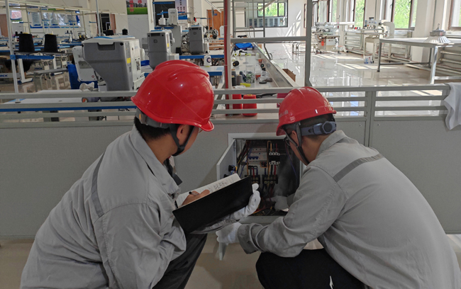 “哒哒哒,哒哒哒……”在柳林县枣林村服装厂的生产车间里,一台台缝纫机工作时发出的响声不绝于耳,工人们正在认真地使用剪刀和模板机对布料进行缝制、修剪,一片繁忙的生产景象。车间内一侧,地电柳林分公司党员服务队员正在对设备、开关、线路进行详细检查。