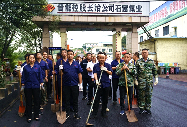 石窟煤业开展“义务除草”主题党日活动,全体党员对矿区外公路两侧及围墙四周杂草进行集中清理,美化矿区环境,营造干净舒适的工作场所。