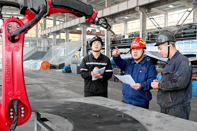 长治中能煤业公司将党建融入公司治理各环节,推动党建工作与生产经营各项工作深度融合,充分发挥党员先锋模范作用,通过党员“1+N”结对包保、传帮带等形式,以“头雁领航”带动“群雁齐飞”,把党的政治优势、组织优势和制度优势转化为企业发展优势,凝聚起推动企业高质量发展的合力。图为该公司机修厂党员正在带领包保小组开展新设备知识学习。