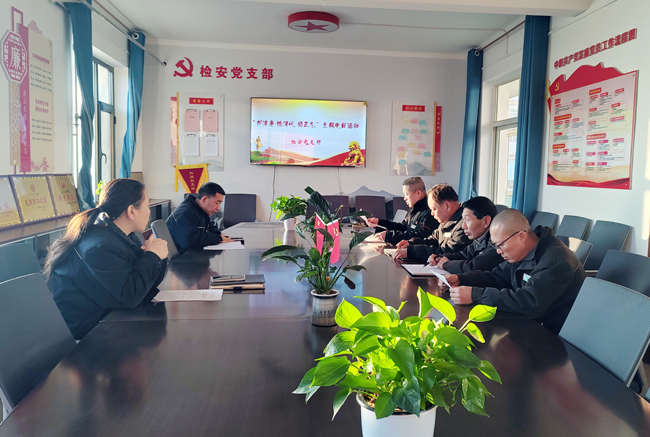 图为该公司检安党支部书记带领党员认真学习《中国共产党纪律处分条例》,持续强化党员纪律意识。
