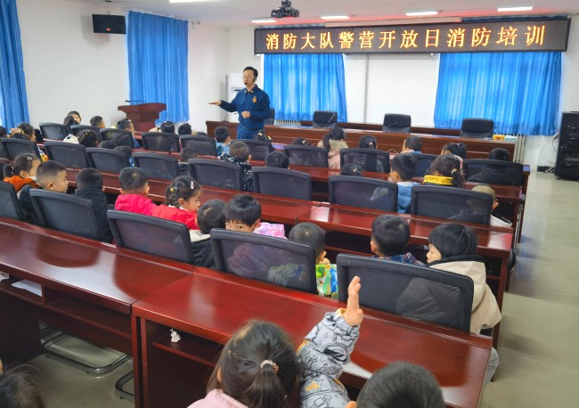 讲好安全知识,营造安全氛围。消防大队组织辖区学校师生来队参观,为他们普及如何报警、如何扑灭初期火灾和火场逃生自救方法等知识。通过消防知识培训、救援装备展览、灭火实操体验等活动,全方位、多角度普及消防安全知识和逃生自救技能,引导广大职工群众关注消防、学习消防、参与消防。
