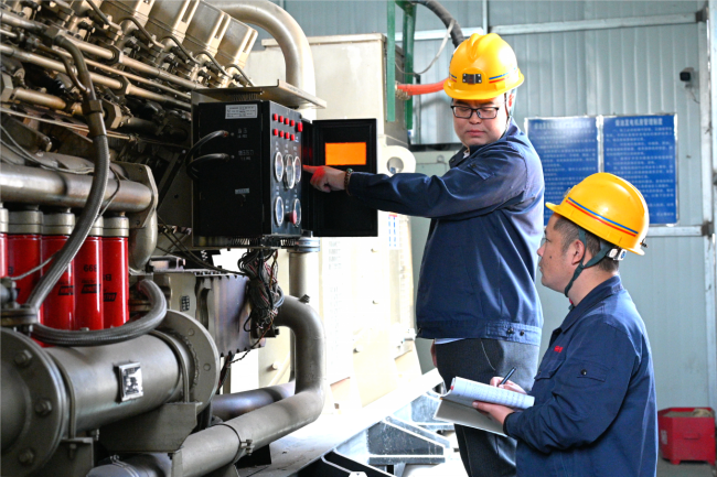 保安煤业不断加强机电设备管理,明确责任分工,持续做好各类设备巡视巡检工作,做到及时发现、及时处置,确保设备设施正常运行,为完成全年生产任务保驾护航。图为机电动力队35kV降压站岗位工巡检发电机运行状态。