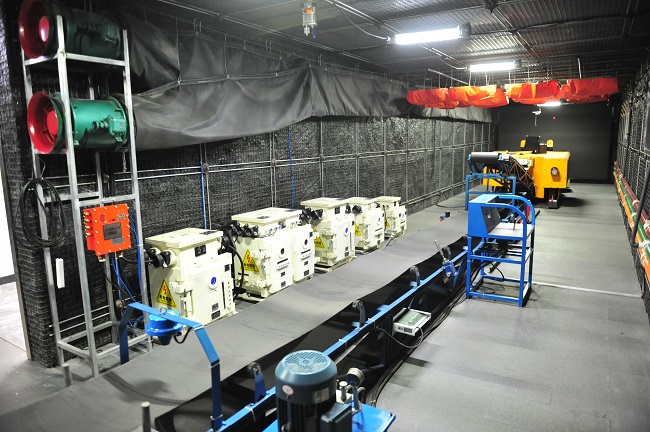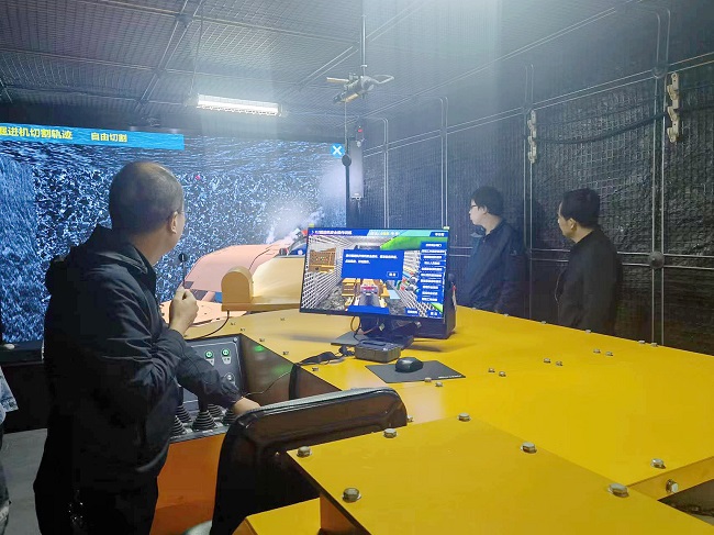 交叉互动,沉浸体验,打造高效课堂。培训基地的实操训练区配备有模拟掘进巷道、井下常用开关电气设备、带式输送机教学装置、综掘机模型及实操智能考试系统,通过模拟综掘巷道和井下实景,实现虚拟场景与仿真综掘机互动,并伴有场景音效和光效,能够完整体现整个掘进作业标准检查和操作工作流程,既有沉浸感,又有交互性。