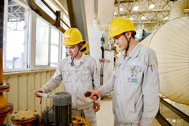 针对夏季环境温度高、设备用电负载大的特点,连日来,临汾热电公司进一步加强高负荷、夜间、节假日等时段的巡检工作,全面排查高温管道、阀门、电机泵体等高风险区域安全隐患,加密重点设备巡检频次,确保设备安全稳定运行,全力打响迎峰度夏保卫战。图为该公司发电运行部青工定时对机房泵体电机进行测温测震检查。