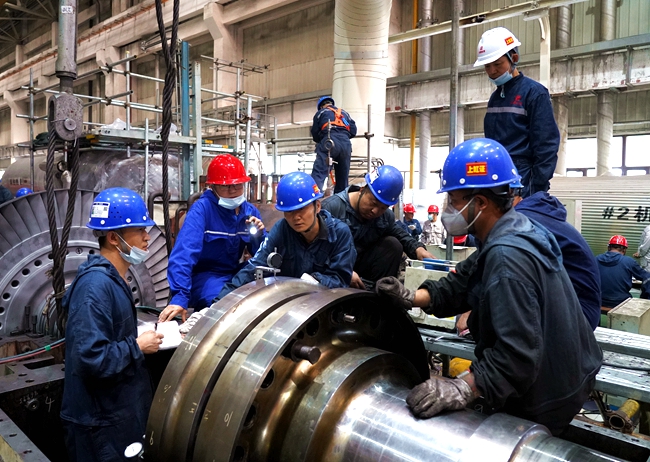 9月11日,晋控电力同达热电公司2号机组A级检修现场一片繁忙景象,检修人员按照计划,对供热设备进行检查、维修,这是晋控电力秋检工作的一个场景。