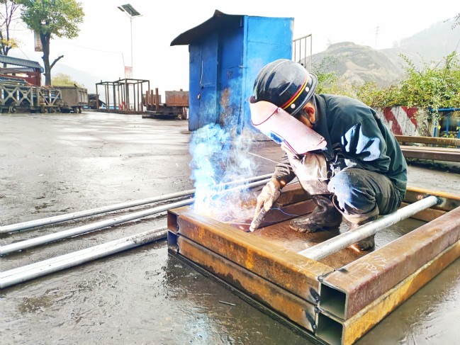 为提升矿区安全管理水平,太原煤气化神州煤业公司在矿区多处重点区域加装围栏、栅栏及其他安防设施,提升安全防护和应急处置能力。近日,该公司在地面主提升机房外围安全通道口安装防护栅栏门,严格治理该区域车辆乱停乱放,保证该区域安全通道畅通无阻。图为公司运输队职工按照既定防护标准和尺寸要求,采用方钢和钢管加工栅栏门并对其进行固定安装。