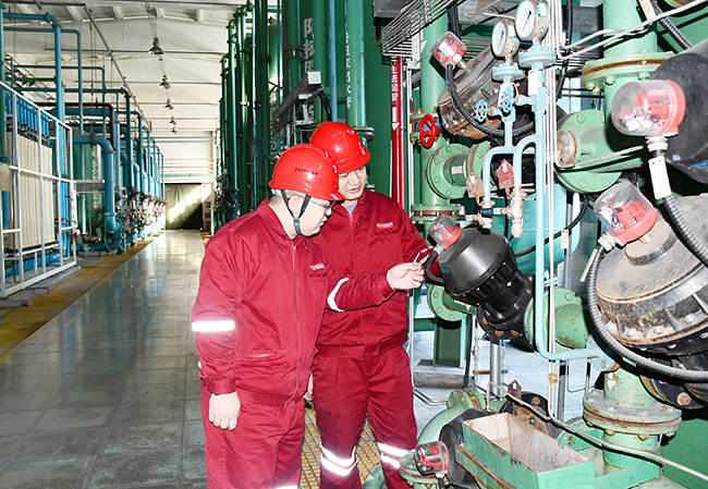 长治热电公司持续深化落实“136”安全管理模式,严格落实设备管理责任制,扎实做好设备巡检消缺工作,建立设备健康档案,规范完善各类设备台账、日志、记录,通过技术监督等手段对设备进行全方位“诊断”,做到对症施治,不断提高设备运行可靠性,助力企业安全生产。图为该公司生产技术和安全监管人员检查化学水处理设备。