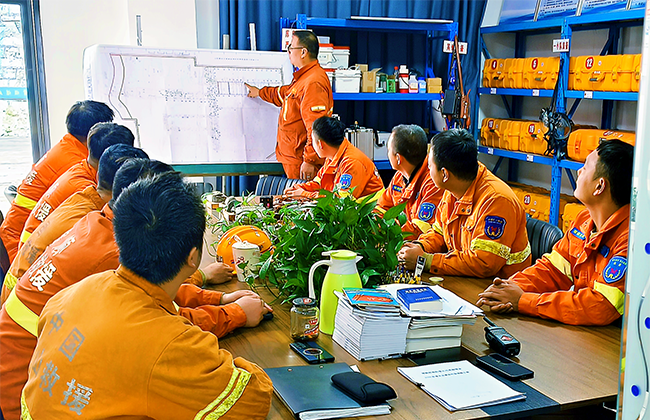 此次演练严格遵守统一指挥、分工协作、分级管理原则,Ⅳ级应急响应机制同步激活。调度指挥中心接警后火速响应,通过应急通讯渠道第一时间将指令精准传达至各应急小组;预警组实时追踪“灾情”动态、精准研判,技术保障组依托通风、供电图纸快速制定科学抢险方案,机电保障组精准管控停送电流程,治安保卫组在井口筑牢警戒防线,医疗救护组携专业装备在行人斜井严阵以待,物资、后勤、财力保障组高效联动,确保救援物资、应急车辆及时到位,形成上下贯通、各组协同的救援合力。