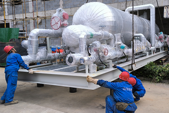 为确保水解器按期到场,该公司提前派专人赴成都厂家现场验收及协调,通过与厂家的紧密沟通,厂家加紧生产,确保10月10日水解器到场并吊装就位,较合同节点时间提前了4天,为后续的安装工作奠定了良好的设备及时间基础。
