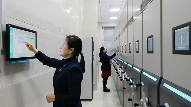 该公司聚焦档案信息化建设,强化科学布局,升级改造后的智慧档案室总面积约300平方米,分为库房区和办公阅览区,实行人事、文书、财务、实物基建等多功能区域管理。档案库房共设有智能密集架44列220组,密集架可实现自动移动、智能查询、档案定位、自动通风、远程管理等功能,并设有感应停止、语音控制系统等装置,实现了智能化操作。