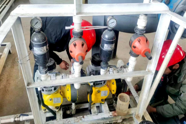 二矿污水站污水处理加药泵在运行过程中发生泵头破裂,造成药液流出。针对这一情况,该公司水电所检修班技术人员用砂纸、修型挫刀对泵头开裂部位表面打磨处理,再按比例调和新型材料铸工胶,涂敷在开裂部位,并进行固化处理,修复后的加药泵在运行过程中效果良好。