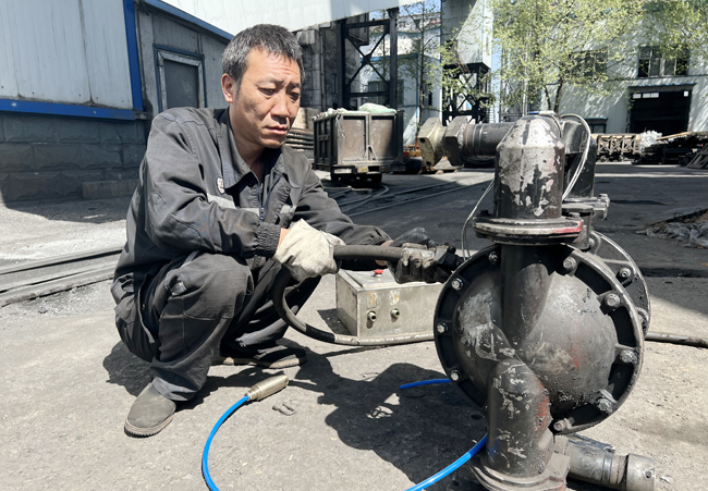 近日,在赵庄二号井综采一队,井下工作场所又添了一个“好帮手”——气动隔膜泵自动排水装置。
