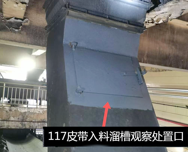 117原煤运输皮带作为连接动筛分选原煤直接入仓及储煤场返煤进仓的关键通道,其稳定运行是原煤产品能够顺利装车外运的关键保障。然而,在井下提煤过程中杂物增多及原煤粒度变化较大,极易导致117皮带入料溜槽频繁出现卡堵现象。为解决这一难题,该公司检修人员结合卡堵故障点进行分析,巧妙地在溜槽易卡堵位置开设了一个600mm×500mm的观察处置口,这一改造不仅提供了直观的监控和处置条件,还极大简化了处理流程,使职工能迅速定位并清除杂物和大块物料,大幅缩短故障处理时间。