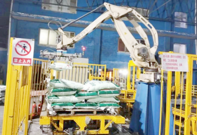 走进公司包装岗位,一片繁忙而有序的景象映入眼帘。工人们正全神贯注地在包装线上忙碌着,包装好的含褐藻寡糖尿素沿着输送带缓缓前行,准确无误地传送至码垛机的抓取位,待码垛机感应后,机械臂迅速而精准地抓取产品,并将其整齐摆放到预定层数。随后,叉车稳稳地将码放好的产品转运至指定区域堆放,整个流程一气呵成。