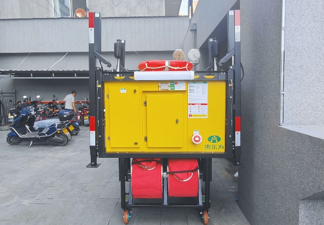 这款新型“排水神器”,即“小白龙”高机动应急排水方舱,是雨季“三防”的“硬核装备”——它将水泵、变频柜、发电机组等设备集成在自装卸方舱内,底部滑轮方便移动,每小时可排水350吨,能快速排出大量积水。相比传统设备,该设备移动灵活、操作简便,排水效率远超传统抽水泵,尤其适合低洼变电站、配电室等重点区域的应急排涝,为雨季“三防”中的电网设备安全提供了关键支撑。