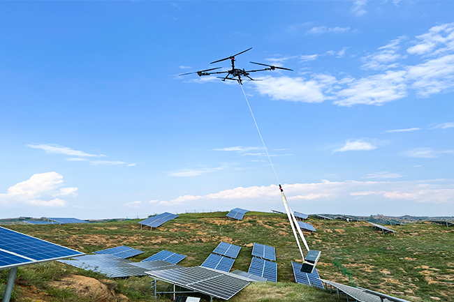 作业当天,无人机平稳升空,精准吊运逆变器穿越崎岖山路,顺利将其送达安装位置。现场运维人员紧密配合,在无人机精准定位辅助下,迅速完成逆变器的安装与调试。整个过程衔接顺畅,与传统作业方式相比,大幅缩短了工时,有效降低了运维人员在复杂地形作业的安全风险。
