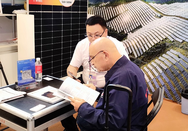潞安太阳能公司参展的太行系列560-580W TOPcon双玻组件凭借优异的转换效率、出色的外观设计、稳定的发电性能,吸引了大量国内外客户的目光。现场工作人员介绍,太行系列560-580W TOPcon双玻组件应用的N型多主栅半片技术可以带来更高的输出功率,可靠性高,抗热斑和抗隐裂能力强,还具有优异的弱光性能,能够在雾霾、阴天等弱光条件下输出更多电量,产品性能十分符合客户对优质太阳能产品的需求。