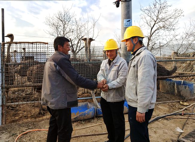 11月22日,地电柳林分公司高家沟供电所党员服务队走进柳林县高家沟乡郭家沟村的鸵鸟养殖家庭农场,帮助检查用电线路设备。