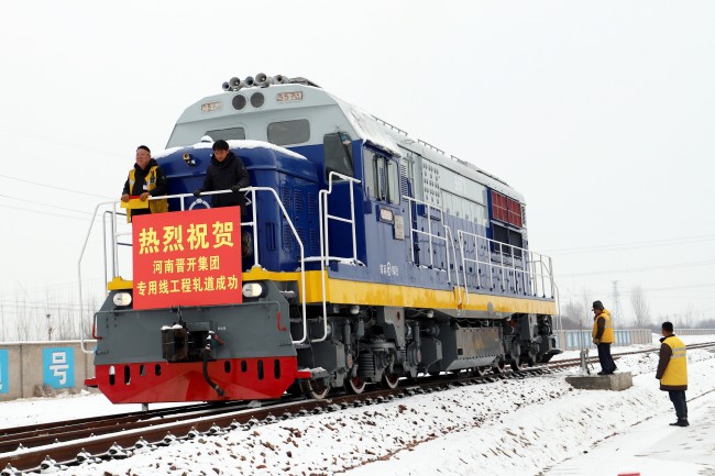 1月16日上午9:30,随着一声汽笛长鸣,一辆DF7C型内燃机车由兴隆庄站驶入晋开公司新建铁路专用线进行轧道作业,轧道试运行成功,项目建设迈出了实质性的一步。