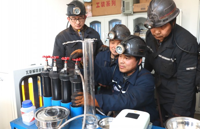太原煤气化登茂通煤业公司积极推进专业化队伍建设,不断加强职工业务技能学习拓展,为职工搭建学习交流的平台,营造比学赶超的浓厚氛围,促进职工队伍素质的整体提升。图为通风瓦检员利用班前时间学习瓦斯通风技术,进行煤样化验,做好测风记录。