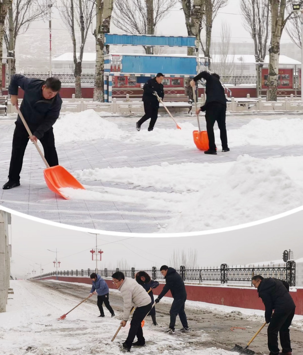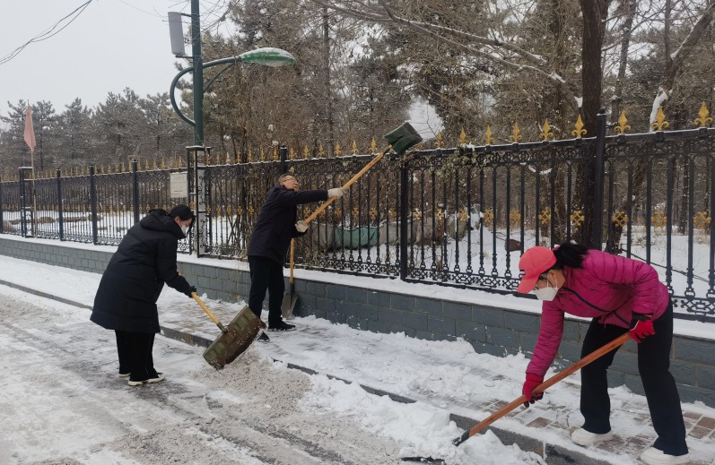 清雪现场,党员、干部以上率下、不怕苦累;员工群众,争先恐后、不甘落后。从生产场地、到办公场所、再到主干道,全面清理积雪,极大地方便了员工出行。