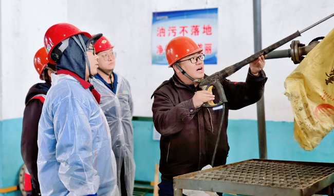 学原理强能力。该公司各工段负责人利用检修过程,对岗位员工进行设备结构“手指口述”式的实地培训,对各部件作用方式及原理进行详细讲解,培养员工系统、分部相结合的思维方式,通过在实践中互学互鉴总结经验,切实提升学习效果。