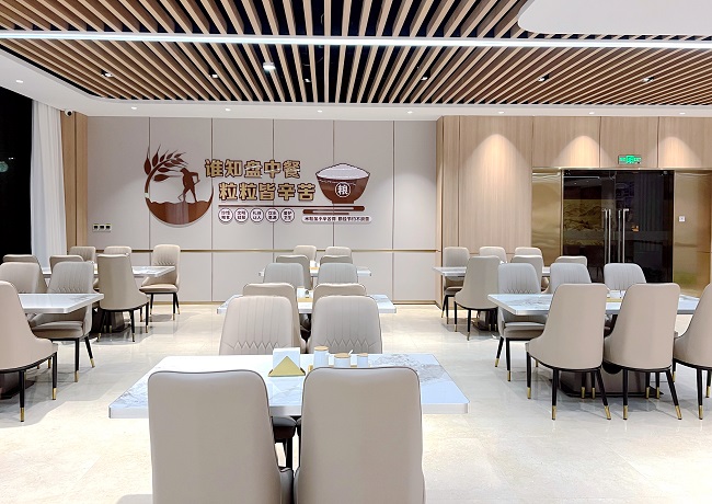 通过“刷脸”进入餐厅,一时间,冬日的寒气被驱散,浓郁的饭菜香气弥漫左右。升级后的职工餐厅面积约400平方米,可同时容纳200余人就餐。柔软的皮质座椅配上简约的木制餐桌,营造了舒适惬意的就餐环境,让职工能够在工作之余放松心情、缓解压力。