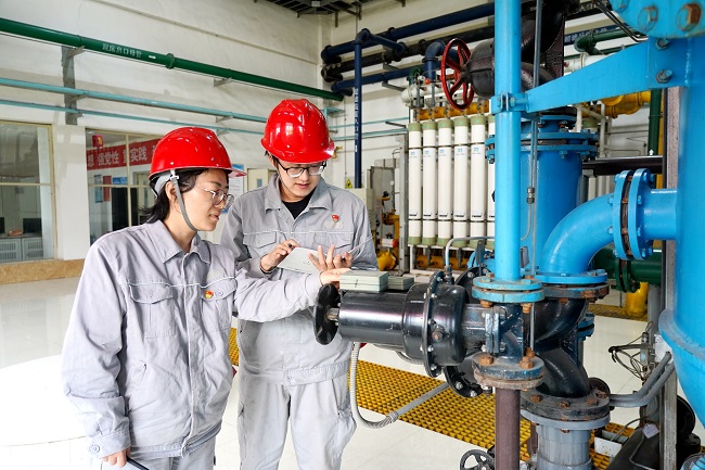 近日,一场别开生面的师带徒活动在同承、同达热电公司如火如荼地进行着。此次活动通过资深老员工与新员工“一带一、传帮带”,帮助新员工提升专业技能,着力培养一支理论基础扎实、工作经验丰富、业务能力过硬的员工队伍,为企业发展注入新活力。图为师傅为新员工讲解反渗透设备原理。