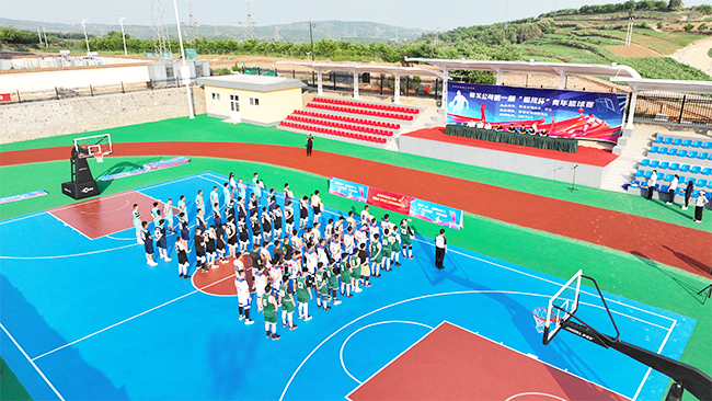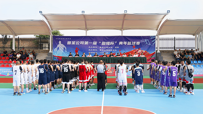 在固隆煤业新修建的篮球场上,蓝绿色的橡胶地面宽敞舒适,“篮球点燃激情、青春铸就辉煌”等标语,鼓舞人心。开幕式上,伴随着高亢昂扬、催人奋进的《运动员进行曲》,运动员们迈着整齐的步伐依次入场,裁判员和运动员代表分别宣誓,坚持“友谊第一、比赛第二、公平公正”的竞赛原则,遵守赛场纪律,发扬体育精神。