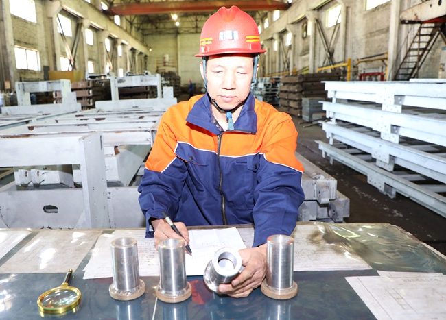田崇科勇敢地站出来着手设计,反复量尺寸、水平点槽、焊接……刚开始没有成功,他并没放弃,坚持反复试验,尺寸更精细、点焊更细致。没多久,在众人的疑惑、惊叹声中,他成功做好了机修厂的第一个溜子胎具。之后,不同型号的溜子胎具、支架胎具,在他的手中都完美呈现。
