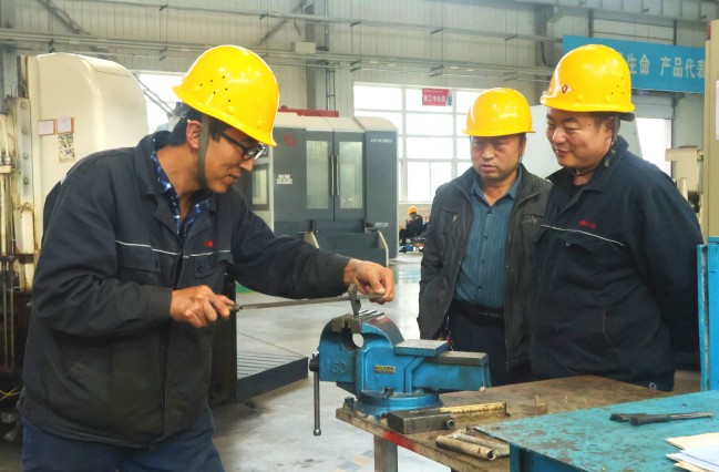 比赛现场,该公司参赛职工展现出高度的敬业精神和坚韧不拔的优秀品质。数控组的参赛职工全神贯注,精确进行测量、编程、装夹、给刀,随着操作屏上由字母、符号、数字组成的指令不断跳动,零件产品经过一番“雕刻”,“蜕变”成精密的部件。钳工组的参赛职工认真操作,手法娴熟,测量零件数据、精确读取、均匀打磨,展现了基本操作技能。现场锉刀声、敲打声、机器轰鸣声此起彼伏,气氛紧张而热烈。“虽然这次参赛过程出现设备故障的突发状况,但我还是尽力完成了比赛任务,做出了属于自己的优秀作品,这次比赛不仅让我展示了技艺,更让我深刻体会到了‘匠心’二字的含义。我会继续努力,不断提升自己的技能水平。”数控组参赛职工王新旺在比赛后说道。