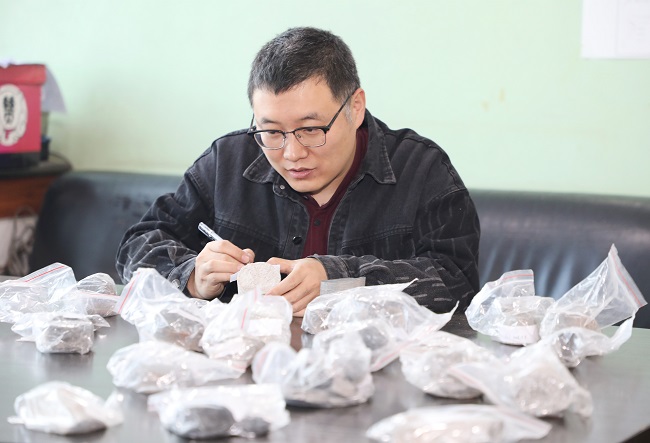 “距离地表最深的岩石标本有614米,这些标本是记录地球历史的见证者,在煤矿资源勘探中起到非常重要的作用,是寻找煤矿资源的重要线索。”说起石头,刘燕勇从办公室地上的箱子里拉出三大袋装在塑封袋子里并贴着标签的石头,只见上面赫然写着岩石的性质和岩石距离地表的深度。“我们尽最大可能做到不破岩、少破岩,这样才能够提升掘进效率。”刘燕勇抚摸着石头说。