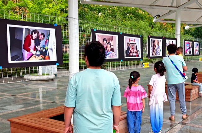 “温馨瞬间・情系家园”主题摄影展在社区广场同步开展。《祖孙情》《其乐融融》等36幅参展作品以真实镜头定格社区居民家庭生活中的幸福片段,吸引了不少居民驻足观看。