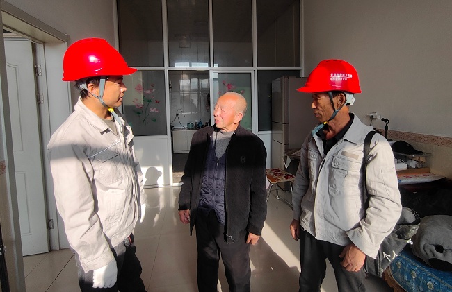 排查结束后,工作人员不忘与老人促膝谈心,关切询问老人的身体状况、取暖情况和生活需求,叮嘱他们注意防寒保暖,有困难及时向供电所反映。一句句暖心问候、一次次耐心倾听,让独居老人感受到家人般的温暖。“孩子们都在外地,你们不仅帮我检查电路,还陪我聊天,真是太贴心了!有你们在,这个冬天既温暖又安心。”独居的赵大爷拉着工作人员的手,脸上洋溢着欣慰的笑容。