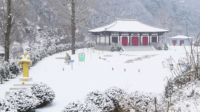 雪花轻盈地落在屋檐上,堆积成厚厚的绒毯,为冰冷的冬日增添了几分温暖与柔和。