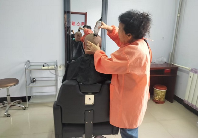 正午时分,食堂备下丰盛午餐:热气腾腾的羊肉鲜嫩软糯,金黄酥脆的油糕甜而不腻。老人们围坐共餐,畅谈活动趣事,温馨如家庭团聚。此外,敬老院还提供免费理发服务,“不用出门就能剪头发,太贴心了。”刚理完发的老人满心欢喜。