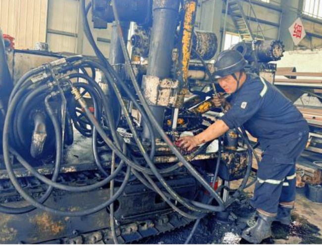 检修中,该公司职工严格按照操作流程,有序更换轴承、钻头、管路及过滤器等零件,并对平衡架进行补焊,完成了整机清洗、履带张紧等作业,全方位恢复了设备性能,以专业技能保障生产运维,为煤矿后续钻探作业筑牢设备根基。