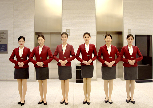 诸如站姿、走姿、侧身步、蹲姿、指引手势等行为举止规范;茶杯起放姿势、续茶间隔时间、递茶侧身幅度等服务礼仪要求;投影幕布、话筒面板、咖啡机、制冰机、吸氧机、打印机等设备的操作维护要点,这些都是会服班组成员日常工作的内容。它们看似琐碎繁杂、微不足道,然而却如同关键的螺丝钉般重要。当被问及如何将这些工作做到尽善尽美时,她们的回答简洁有力:“多练一练。”