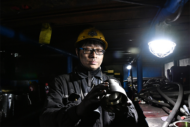 “越是有危险的地方越得带头上,因为自己是班里的顶梁柱。”“顶梁柱”这一词是杨阿敏给自己的定位,他认为在工作上就应该给职工们顶起来,让职工们时刻感觉头顶有天、背后有依靠。“急难险重冲在前、以身作则带头干”这是机电安装分公司干部职工们对杨阿敏的一致评价。5302工作面回收机组那天是杨阿敏工作以来遇到的一次大困难,因井下过构造,旧机组挂臂销变形很难取下来,造成机组吃力,再加上巷道内地方狭小,一时间造成了作业困难,经过反复勘察、研究,杨阿敏提出了用砂纸打磨的方案,方案确定后他抢先冲进工作面,弯着腰进行打磨,一干就是好几个小时,终于将旧机组成功回收。